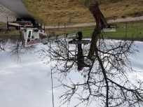 Für den Baumschnitt auf der Bergholzer Straße konnten wir dank der Unterstützung durch die Gemeinde Michendorf einen Hubsteiger einsetzen. So konnten wir nicht nur die mittlerweile wieder nachgewachsenen Misteln entfernen, sondern auch gefahrlos Totholz und bruchgefährdete Äste ohne riskante Kletteraktionen entfernen. Im Laufe der letzten Jahre sind einige starke Äste abgebrochen, wahrscheinlich meist Trockenheitsschäden, einige evtl. auch weil sie dieses Jahr (zu) viele Äpfel getragen haben. Wir haben versucht vorrauszuahnen, welche Äste nächstes Jahr abbrechen könnten und hoffen, dem zuvor gekommen zu sein. Einige der mittlerweile ca. 80 Jahre alten Bäume, die in den 1950gern gepflanzt wurden, werden wahrscheinlich in den nächsten Jahren eingehen und dann durch Nachpflanzungen von uns ersetzt werden müssen, während andere durch die durchgeführten Schnittmaßnahmen revitalisiert werden konnten und wieder üppig austreiben.