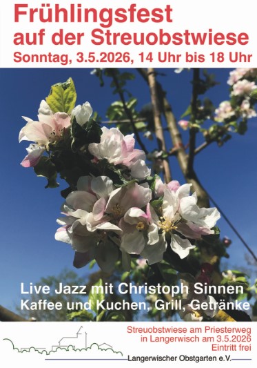 Dieses Jahr veranstalten wir unser Streuobstwiesenfest schon am 3. Mai von 14 bis 18 Uhr. Wir freuen uns auf ihren Besuch auf der Wiese am Priesterweg in Langerwisch. Der Eintritt ist frei.